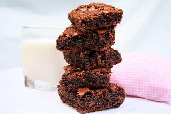 在铁架上完全冷却,大约1小时。用黄油刀在锅边切一圈。迅速翻转平底锅,摔在砧板上。一整块布朗尼马上就能出来了。把巧克力块正面朝下,切成16个方块,切之间用刀擦干净。食用或储存在密封容器中。
