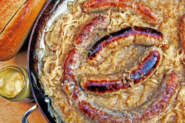 虽然这些South-Philly链接可能与在德国酒吧,他们的工作完全在这个食谱:香肠的肉桂对磨碎的苹果和杜松子炖。经过30分钟的温柔的酝酿,酸菜吸收所有这些口味的果汁以及所有香肠,成为这些何奇三明治美味的调味品。