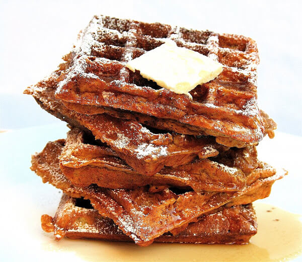 预热对开式铁心热,预热烤箱至200ºF。加入面粉,两汤匙的糖、泡打粉、盐和香料。在另一个碗中,搅拌脱脂乳、南瓜、蛋黄、奶油和香草,直到顺利。结合湿和干燥的成分和混合直到混合。用电动搅拌机打蛋清直到柔软的山峰的形式。慢慢加入剩下的汤匙的糖和打至表面光滑。三分之一的蛋清搅拌成面糊,以减轻,然后轻轻地折叠在剩下的白人。舀出一些激烈的对开式铁心和煮直到酥脆和黄金。与此同时,在顶部放置一个冷却架烤板。华夫饼脱落铁,在冷却架锅在炉取暖,直到所有的华夫饼干完成烹饪(架保持华夫饼干糊底)。