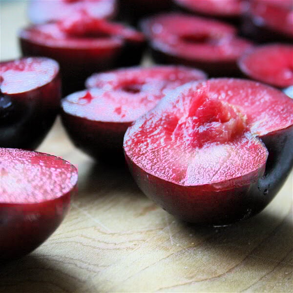 总之,关于这个李子蛋糕。这个食谱出现在玛莎·斯图尔特生活从去年夏天开始,我就一直把它记在心里。上周六早上,当我和本来到圣地亚哥的城市高地农贸市场时,我找到了做这个蛋糕的完美理由:一篮子李子——至少装了20个左右——售价4美元。在回家之前,我们还买了一些桃子、牛油果和两条红鲷鱼片。然而,这些又甜又多汁的李子却成了他们的珍品。我在这个蛋糕里放了10块,但剩下的足够我和本吃一周了。我今天早上吃了最后一个。