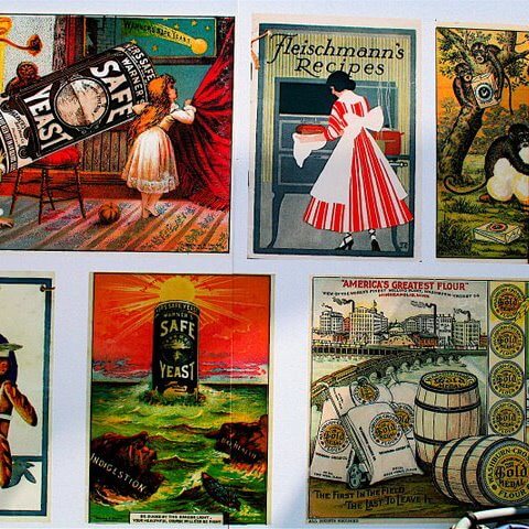 复古海报衬里的墙壁面包摊位慢食的味道墙: