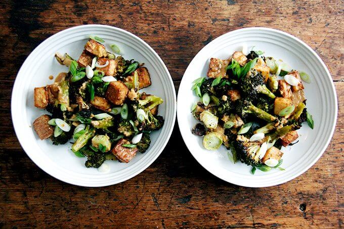每年的比其他任何时候,我发现自己到达的豆腐。这道菜从Deb佩雷尔曼的最新击打厨房每天1,满足我所有的倾向:脆皮豆腐、花椰菜sesame-peanut香蒜沙司,super-flavorful酱仿照酱汁酱Deb的最喜欢的美味地不真实的“外卖面条。