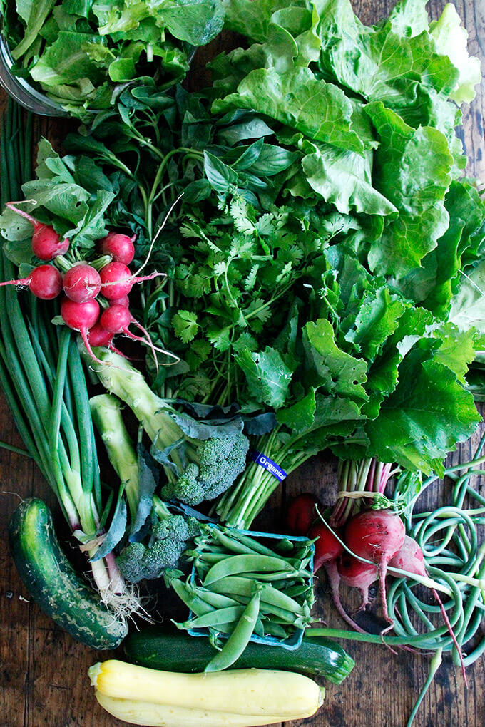 但是这些蒜屑该怎么处理呢?(从上周的分享来看也是如此?)还有这么多罗勒和香菜?当你发现自己在周一晚上,另一个农场股票交付的前夜,有萝卜和萝卜时,你会怎么做?
