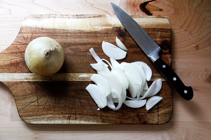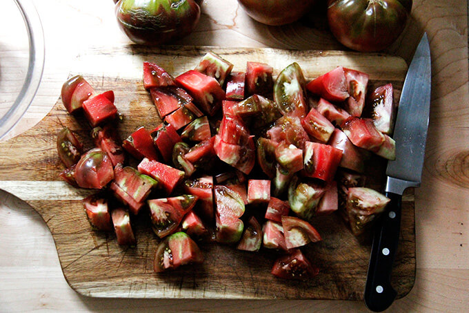 这个食谱,改编自Marcella Hazan著名的酱汁,从开始到结束需要30分钟,吃起来很新鲜,很夏日。到目前为止,我用的是酱汁不用大惊小怪的茄子帕尔玛干酪还有,如图所示,另一种夏日最爱:茄子卷丁。我手头有几夸脱冷冻酱汁,毫无疑问,我会添加到所有的供应中,因为这种酱汁感觉很容易制作。