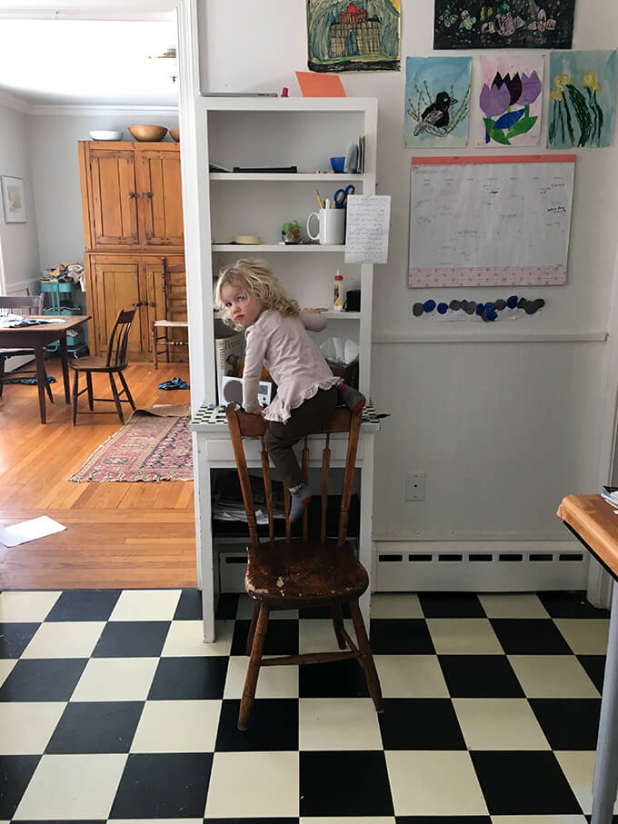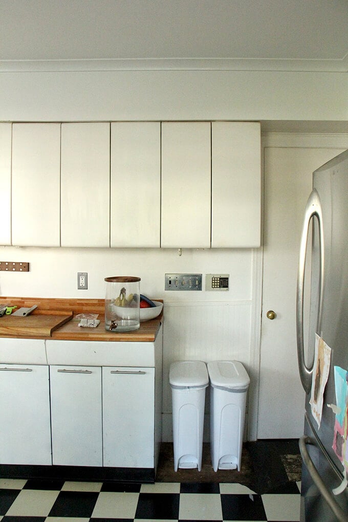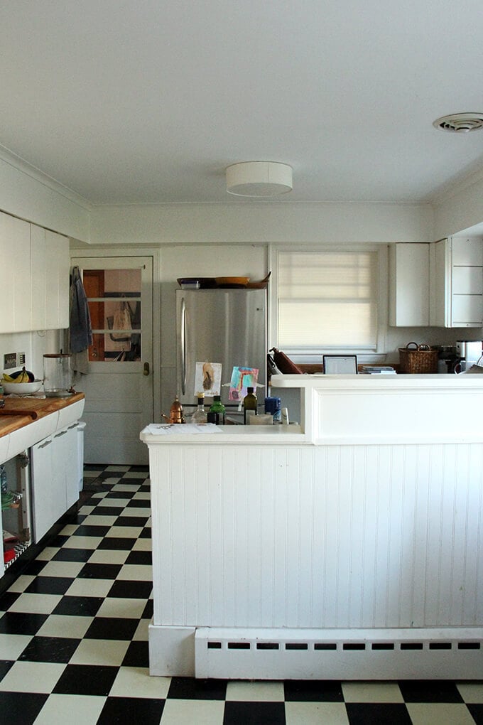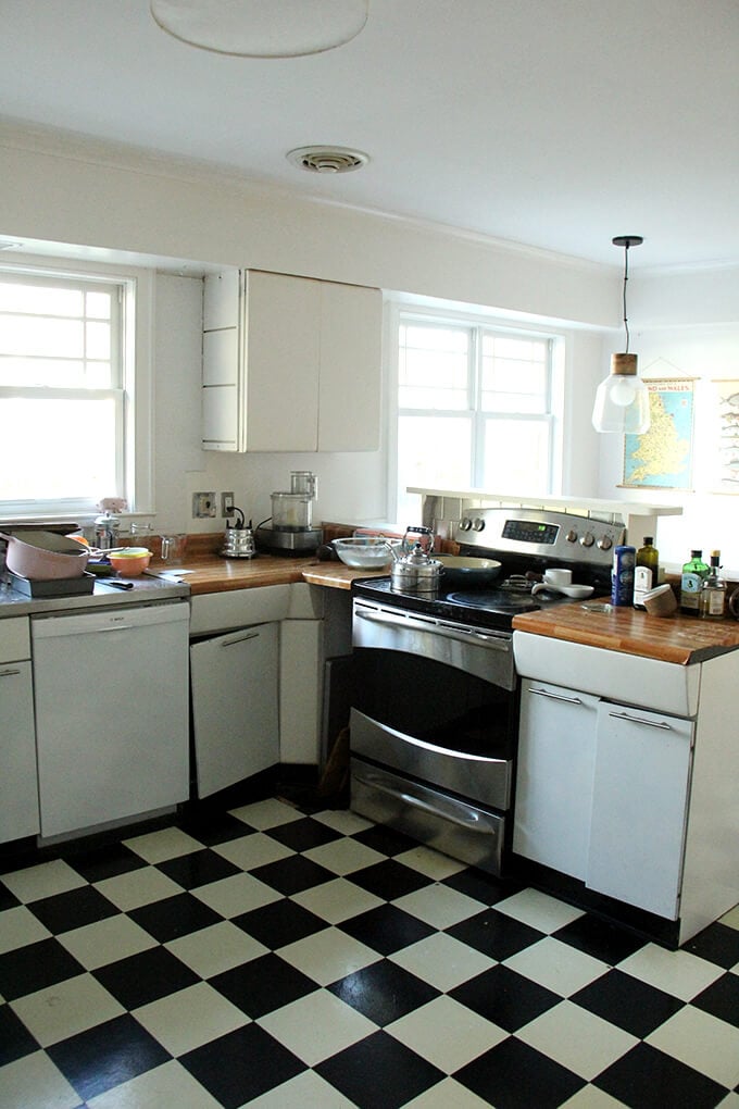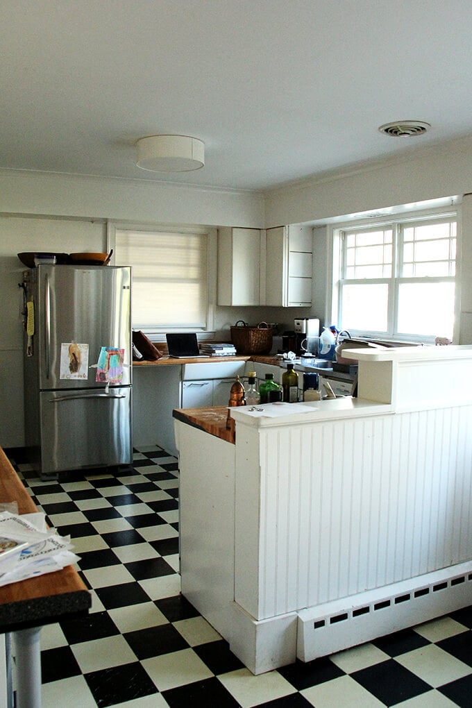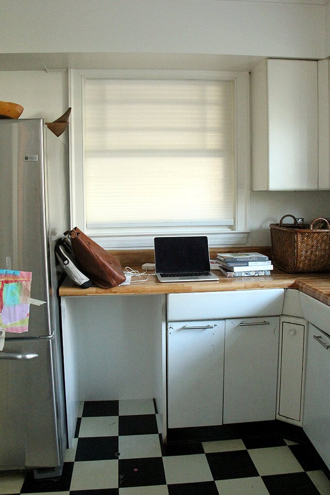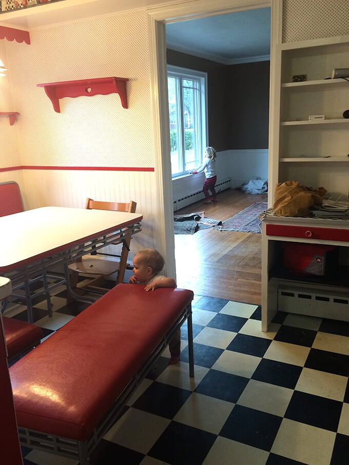 这篇文章主要是为我。一样我不喜欢厨房的外观当我们第一次进入我们的房子五年前,我有美好的回忆和表的红色乙烯宴会,这实际上孩子爱和出奇的舒服,但是这是一个总疼痛clean-getting扫帚在这些狭窄的空间并不容易。如果你不关心看到“之前”照片(+许多我的孩子的照片),但落在这里寻找厨房改造信息,查看这些职位: