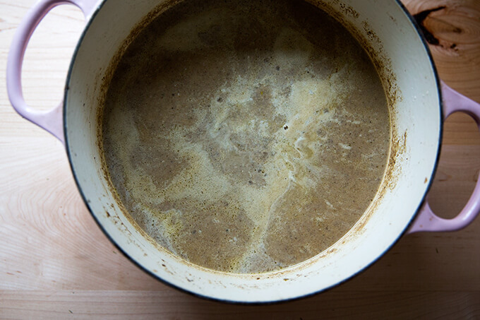 当我很有组织,我让一批蔬菜股票并根据需要冻结其手。否则,我不假思索地使用水twice-well-salted水是完全可以代替股票。