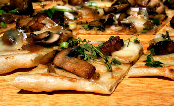 与此同时,在一个大的不沾锅,把油加热,直到几乎吸烟。加入蘑菇和离开安静的2分钟。2分钟后,轻轻晃动锅,有犹太盐和胡椒调味,加入葱。让煮2分钟的时间,直到青葱浅金色,然后从热移除。洒上的百里香,然后转移到一个盘子来冷却。