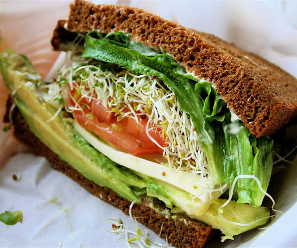 现在,由于一个小点在加拉卡斯系列全集叫队长毛里,一天的午餐已经成为亮点。周一,有一晚早餐和午饭的心情,我决定尝试一个巴西莓碗,一碗巴西莓浓汁,加上格兰诺拉麦片,香蕉片,苹果和切碎的山核桃。我可能更喜欢香蕉和格兰诺拉麦片,但混合物是美味的。昨天,我尽情享受上述如鳄梨和杰克三明治和今天,蔬菜包装,如下图所示。所有的三明治配蛋黄酱,生菜、西红柿和豆芽女人(?——要么从来没听说过)面包,和包装充满了吃素的小馅饼,黄瓜、西葫芦、胡萝卜、香醋和豆芽- yum !感谢表哥杰另一位伟大的建议。