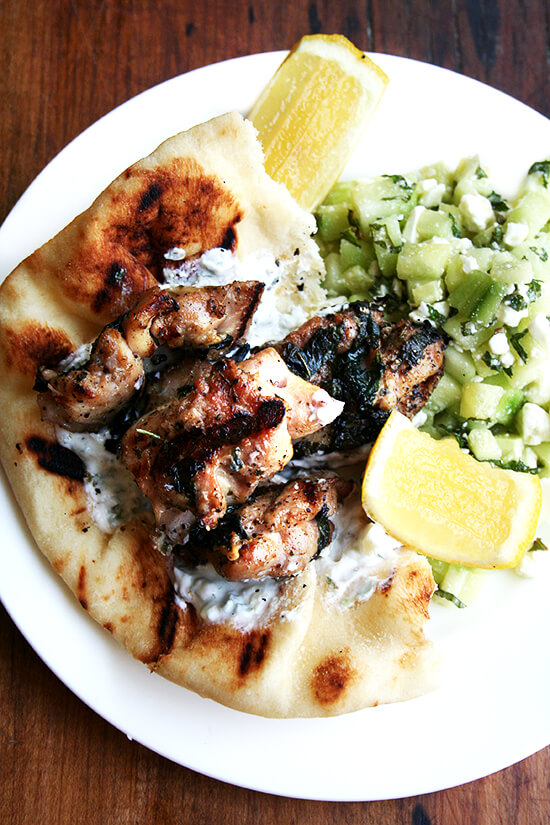 鸡烤肉串酸奶黄瓜和黄瓜沙拉始终是一个打击。