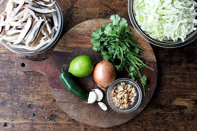 我一直做这个白菜垫Thai-ish末以来以某种形式或另一个秋天,当我发现安迪·米切尔的配方吃在中间,和我CSA奇迹般的内容包括所有的关键成份:白菜、辣椒、香菜和洋葱。