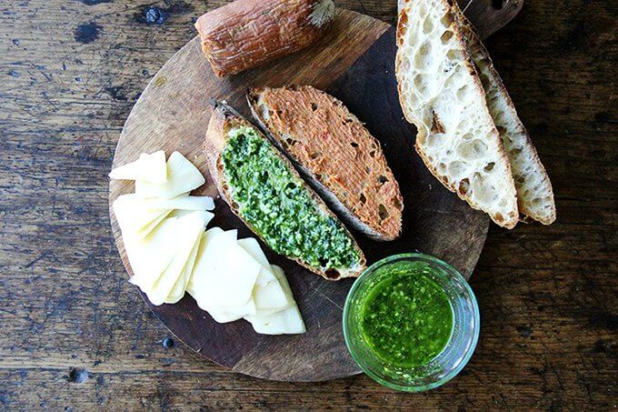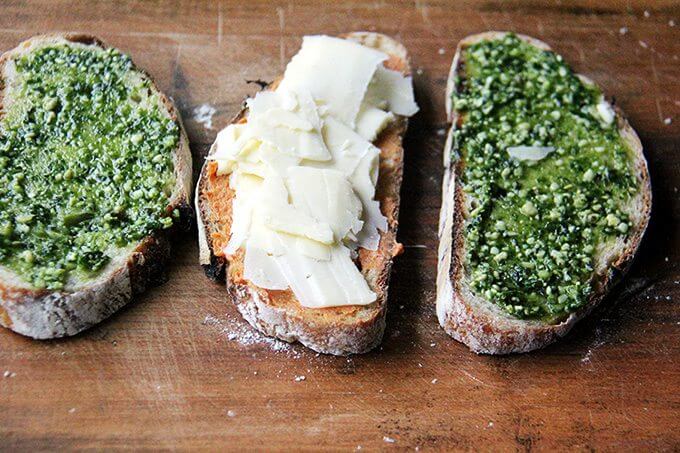 过去的这个冬天,Colu亨利》一书的作者口袋里的意大利面,把我介绍给来自卡拉布里亚nduja——一个烟雾缭绕的,容易被涂开的香肠。Nduja Colu的技巧是快速和超级美味面食真主安拉伏特加,和,它已成为一个主要在我的储藏室。我发布菜谱Food52后不久,有人指出她爱涂中写道“nduja硬皮面包,这使我立刻渴望“nduja烤奶酪。我给它一个去威斯康辛芳,一个伟大的融化的奶酪,罗勒酱,提供新鲜的丰富性与pate-like蔓延。在意大利的主题保持一致,我夹在厚片ciabatta之间的三个成分,其多孔碎屑所以很好地吸收味道辛辣的nduja和甜,朴实的能力。一个每个成分的走很长的路,所以,如果可以,用浅色的手当layering-though我会理解如果你不能。