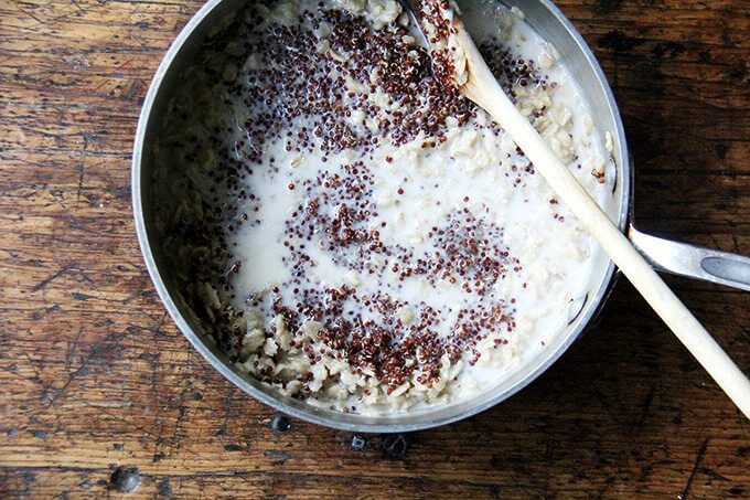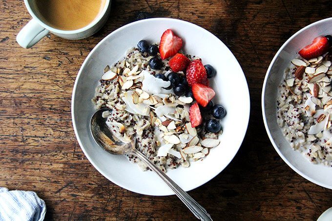 去年秋天,我遇到了一个朋友在哈德逊的早午餐Rivertown小屋,我命令他们的奎奴亚藜和燕麦粥,吃它在记录时间,已经花了几个月的时间在做梦。我最近得知这道菜(Rivertown的整个菜单)是由Jean亚当森的所有者醋山的房子在布鲁克林,请与我分享菜谱。我写了一下在Food52,但是,一如既往,可直接跳到配方:吉恩·亚当森Quinoa-and-Oat粥。