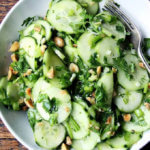 亚历山德拉,我沉迷于这个食谱。我喜欢黄瓜,我吃这个沙拉至少每月从我看到这里年前。有时候我让穿砂浆后磨了花生大蒜和抨击。我可以吃一个双人配方自己所有。谢谢你这神奇的秘诀!