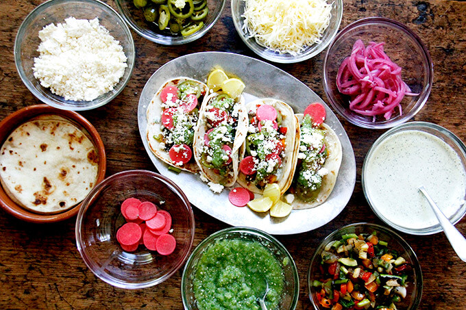 - 服务:把温暖的烤蔬菜装进温暖的玉米饼,勺子克丽玛,萨尔萨舞,肯定和任何其他的你喜欢的。